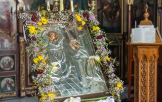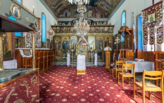 Its architecture is royal covered by a gabled tiled roof and it is a modern church built after the Second World War. The Germans had demolished the church to build a machine gun and after the end of the war the inhabitants of Pollonia rebuilt this modern church from scratch.