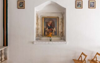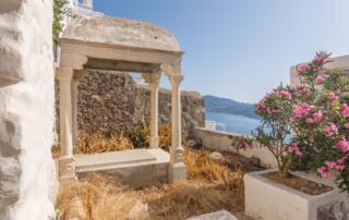 On the north side of Panagia Korfiatissa (a narrow street below) you will find the second catholic church of the island, Panagia ton Rodon or Rozaria.