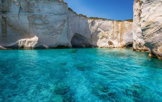 To enjoy its crystal clear turquoise waters and its unique formations you should come by boat or sailboat. Kleftiko used to be used as a shelter and base for pirates and from there it got its name.