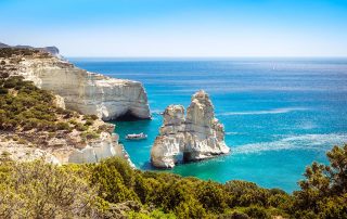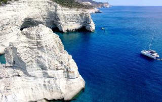 Kleftiko or “Thalassina Meteora” as many call it, is a set of gray and white rocks with strange shapes and formations, with caves and pits created over the centuries by air and sea.