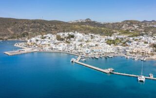 This modern coastal village is located in the bay of the island, one of the largest and safest natural bays in the Mediterranean, and is the largest tourist center of Milos.